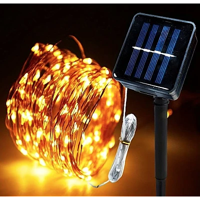 Instalatie cu incarcare solara ALB CALD 100 led 10 metri